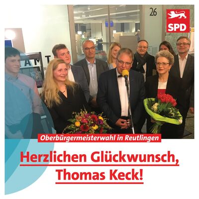 SPD-Landeschef Andreas Stoch hat sich angesichts des Wahlsiegs von Thomas Keck bei der Oberbürgermeisterwahl in Reutlingen „vollkommen überwältigt“ gezeigt. „Das ist einfach grandios. Es war hauchdünn, ein echter Wahlkrimi, spannender als jeder Tatort – aber gewonnen ist gewonnen! Herzlichen Glückwunsch an Thomas Keck, an sein Team und an die ganze Reutlinger SPD! Das war spitzenmäßig“, so Stoch, der am Sonntagabend bei der Wahlparty in Reutlingen mit dabei war.